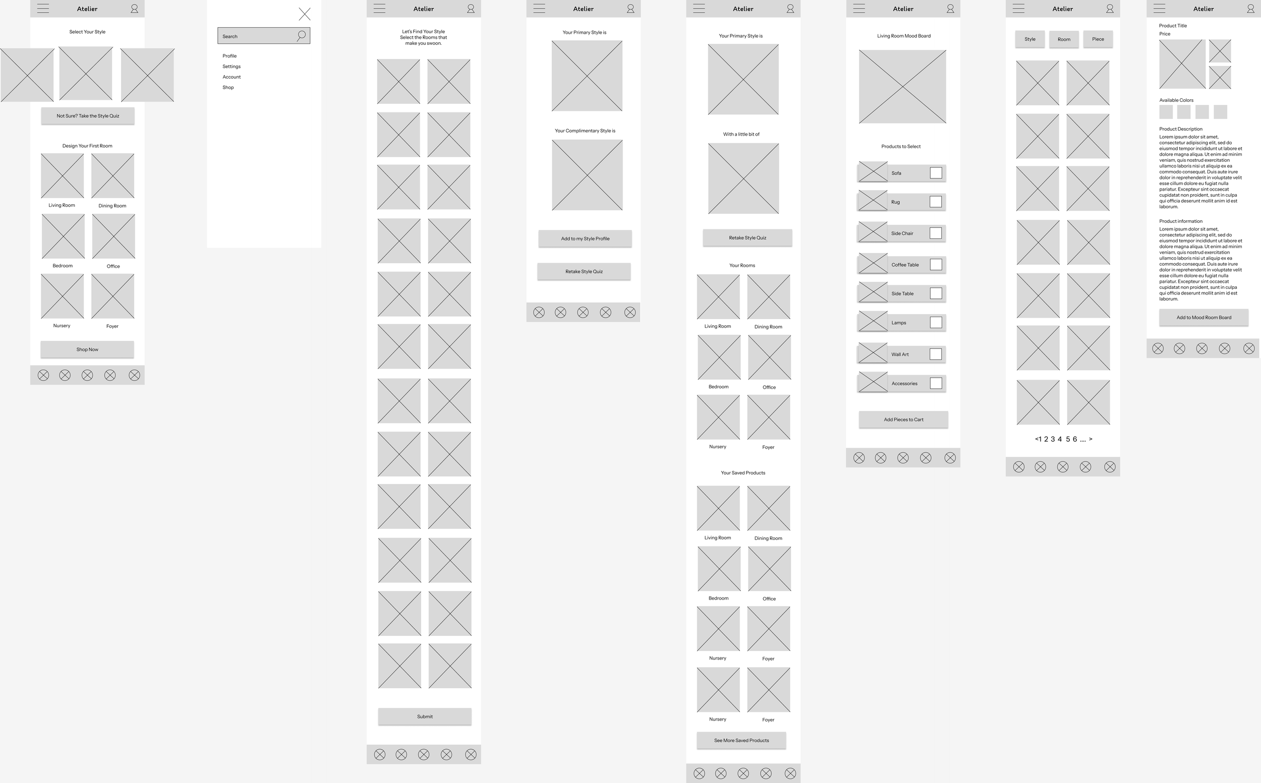 The goal of Atelier was to create an approachable, user-friendly app that demystifies interior design. The app needed to guide users through identifying their personal design style, provide tailored recommendations for their space, and make it simple to shop for products that align with their vision. Ultimately, the project aimed to empower everyday users to feel confident in designing their homes without needing professional help or advanced design knowledge.