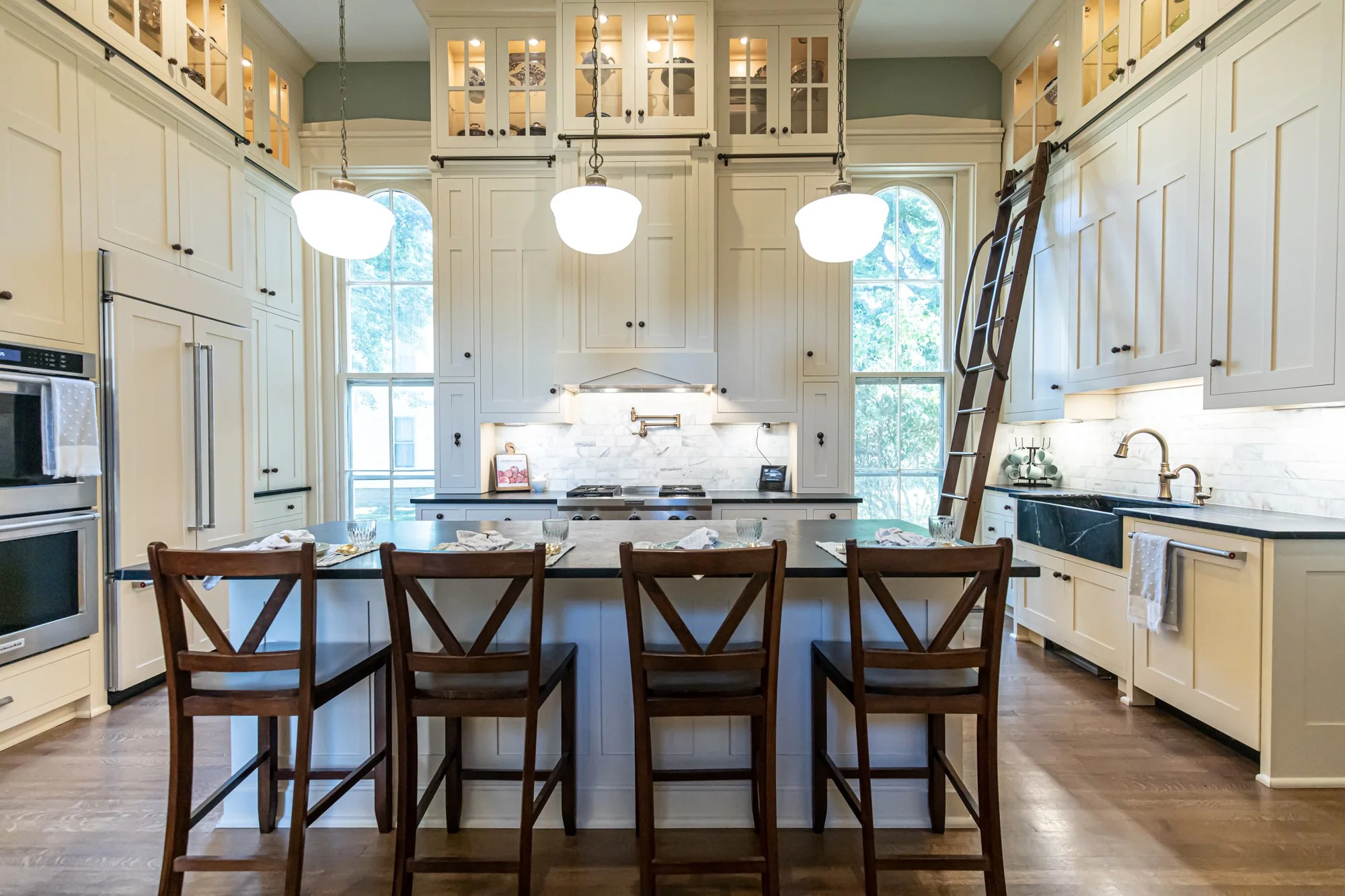 The space now feels stately yet inviting. It supports daily family life while honoring the historic story of the home, transforming the kitchen into a timeless gathering place.